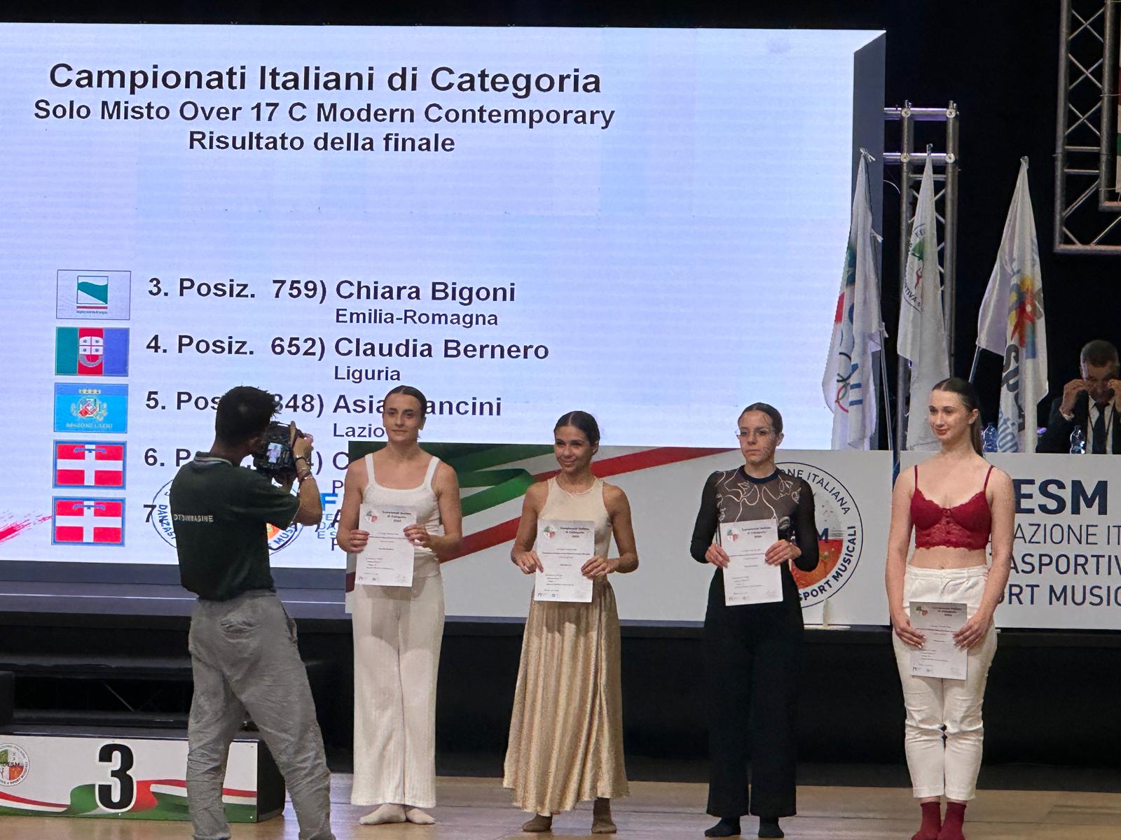 - Primo posto campioni italiani 2024 su 15 gruppi in tutta Italia (Carlotta, Chantal, Ginevra, Michelle, Lavinia, Arianna, Rebecca) piccolo gruppo over 17 danza moderna.