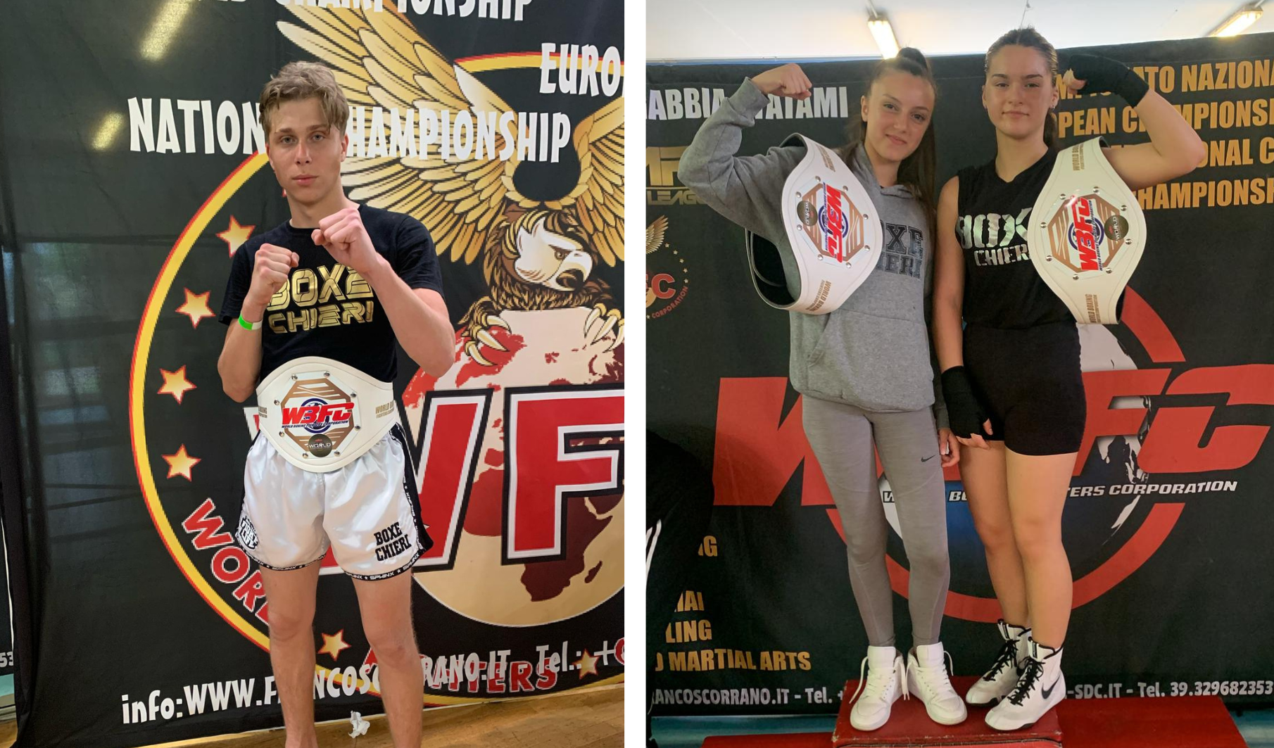 CHIERI. Impresa storica per la Boxe Chieri ai Campionati Mondiali di Light Contact Under 15/17 organizzati dalla WBFC e disputati domenica 27 aprile al Centro Sportivo Sandro Pertini di Cornaredo (MI). La società piemontese torna a casa con un bottino eccezionale: tre cinture mondiali conquistate in una sola giornata, tra pugilato e K1.