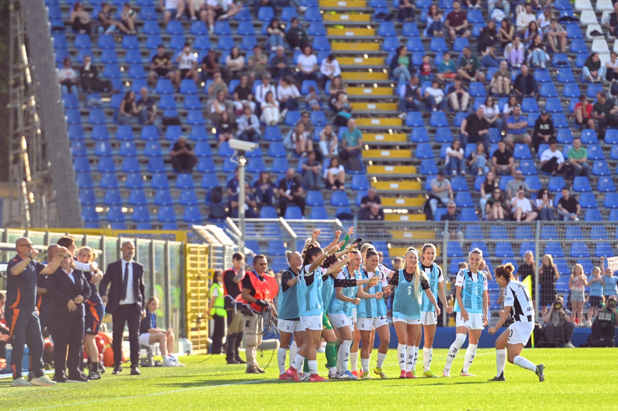 Nella ripresa la Juventus controlla il ritmo con autorevolezza. Al 55’, Barbara Bonansea sfiora il quinto gol, ma il suo tiro da distanza ravvicinata, su assist di Cantore, termina sul fondo.